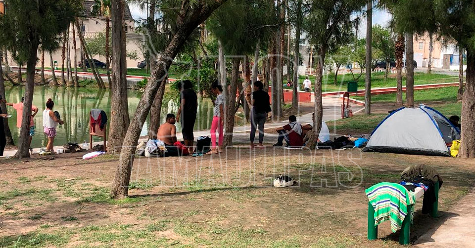 Matamoros, Tamaulipas.- Ante la falta de espacios en los albergues habilitados para su atención, los migrantes que siguen llegando a Matamoros han comenzado a invadir espacios recreativos como es el caso del Laguito.