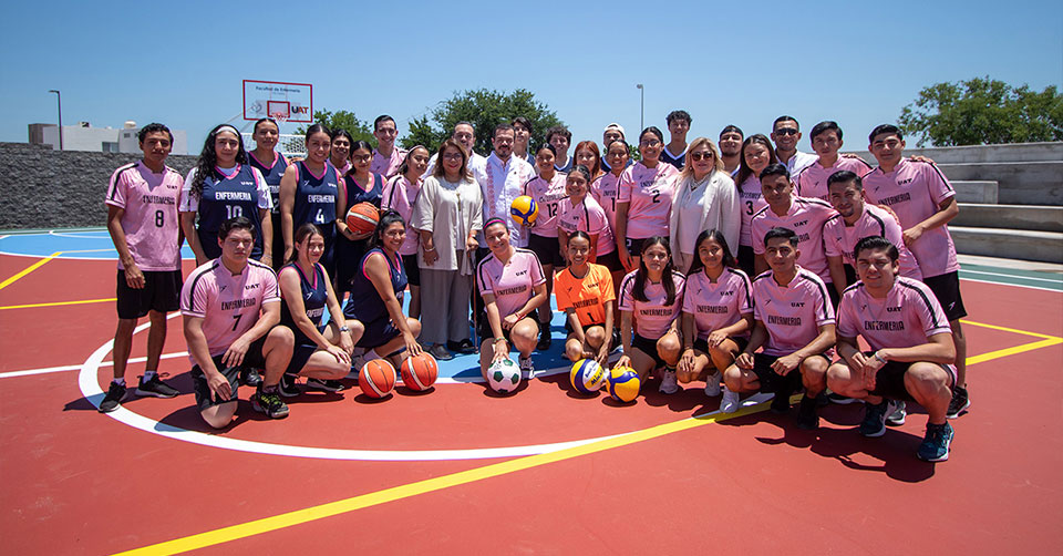 Antes de iniciar la reunión del Colegio de Directores, el rector Guillermo Mendoza Cavazos encabezó un recorrido por las instalaciones de la Facultad de Enfermería Victoria, donde constató los avances de la cancha de usos múltiples y espacios deportivos.