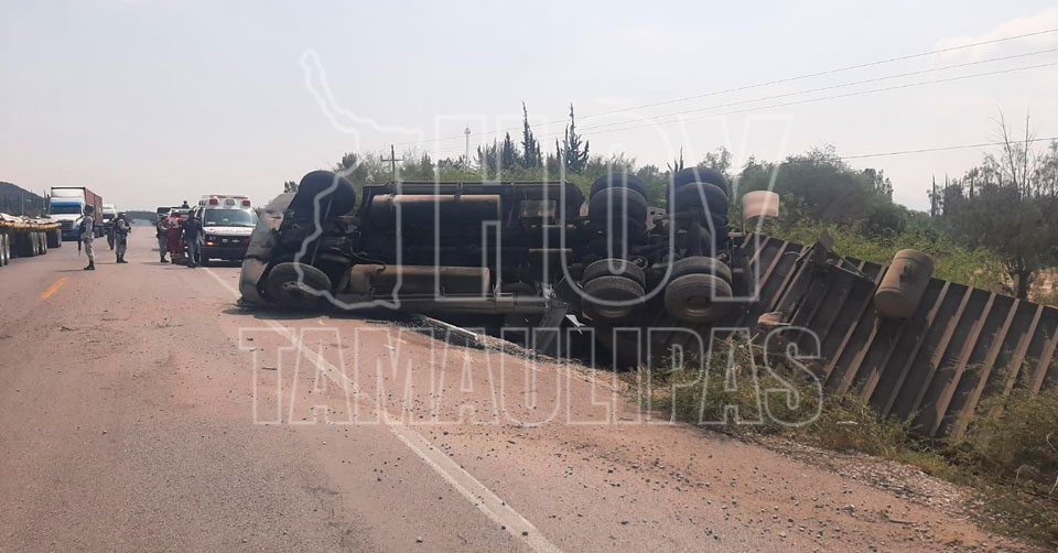 Vuelca tráiler en la carretera Tula-Victoria; cerrado un carril