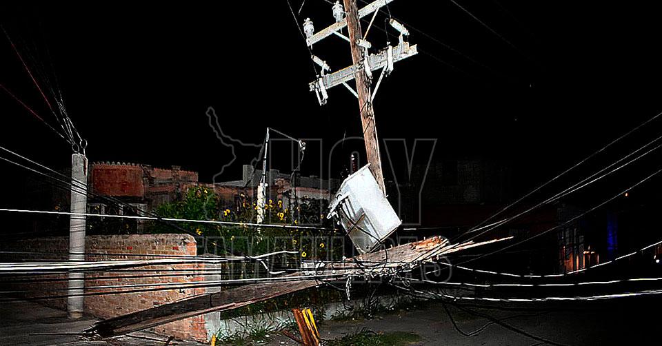 Mientras circulaba de poniente a oriente por la calle González, Juan perdió el control de su vehículo y se estrelló contra un poste de madera que sostenía un transformador.
