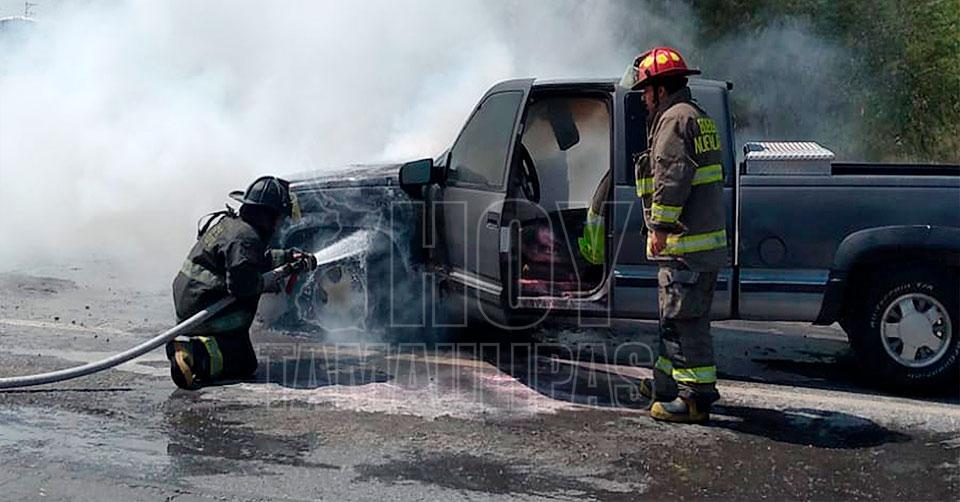 Nuevo Laredo, Tamaulipas. — Oficiales de Tránsito se convirtieron en héroes al actuar como bomberos y sofocar un incendio que consumió una camioneta en la que viajaba un matrimonio.