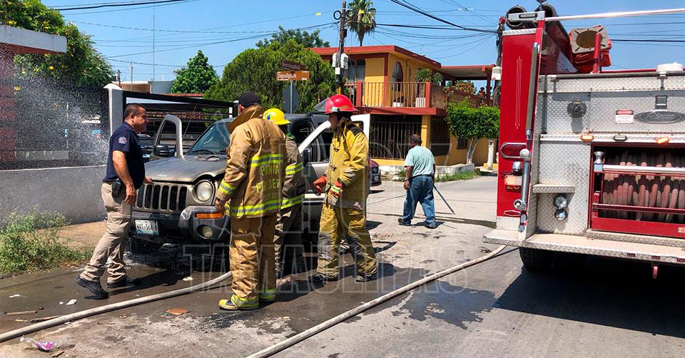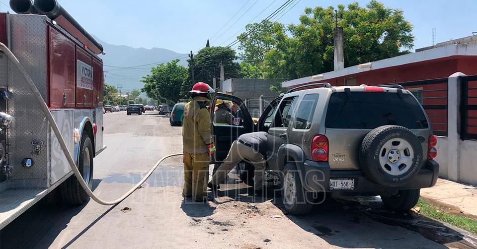 Corto circuito consume su camioneta en Victoria; acababa de reparar la marcha