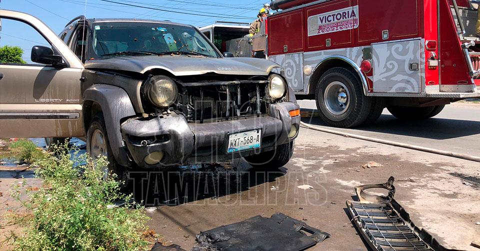 Ciudad Victoria, Tamaulipas. - Una ama de casa sufrió pérdidas materiales al incendiarse su camioneta esta tarde, luego de haberle reparado el motor de arranque en Ciudad Victoria.