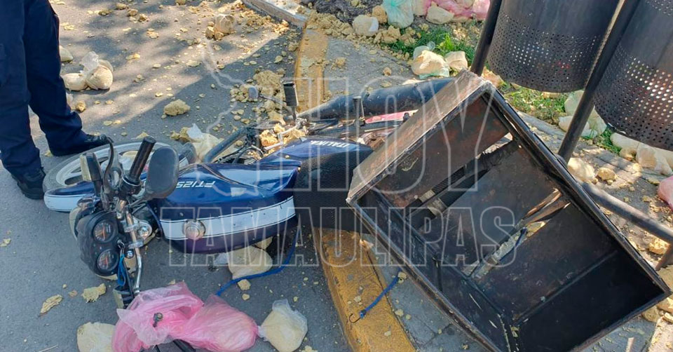 Tumban a motociclista en el 17 Ocampo de Victoria; llevaba masa para las tortillas
