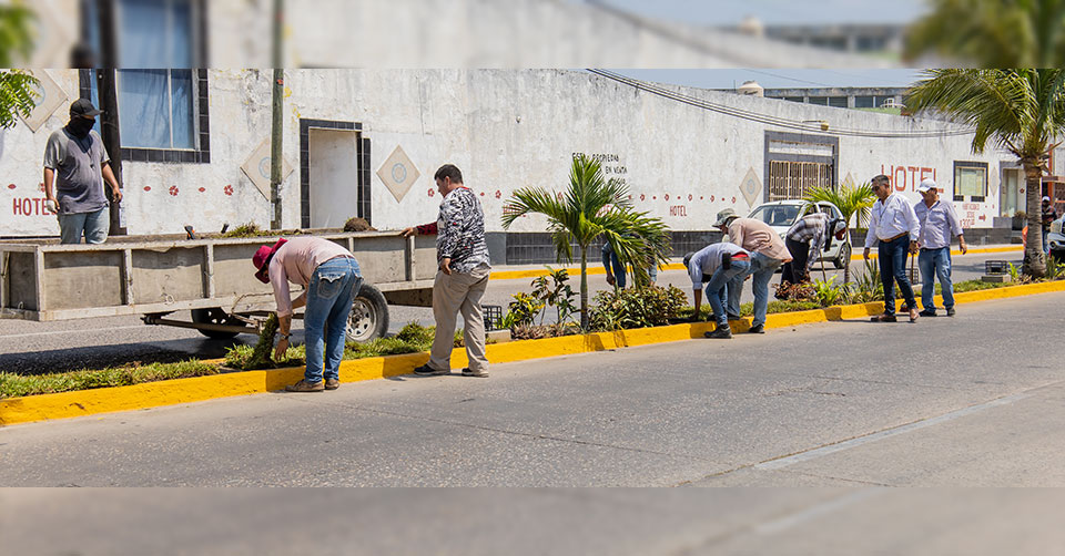 Las labores realizadas por las cuadrillas de la citada dependencia municipal, consistieron en la limpieza y mantenimiento del camellón central, cambio de palmeras y siembra de pasto, así como la reparación e instalación de luminarias.
