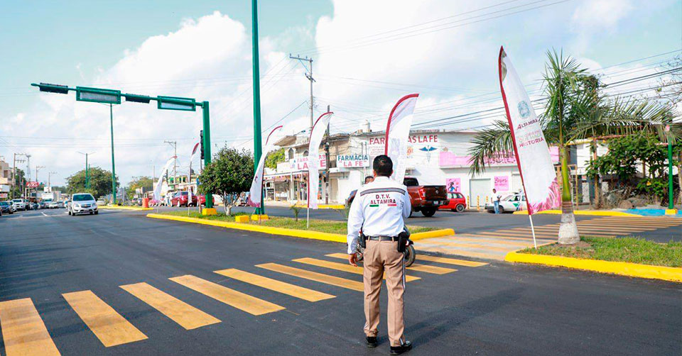 Altamira, Tamaulipas.- El presidente municipal de Altamira, Mtro. Armando Martínez Manríquez, llevó a cabo la inauguración de un nuevo crucero vial de semáforos en la calle Juan de la Barrera con Calle California, ubicada en la colonia Altamira Sector 2 y Sector 3.