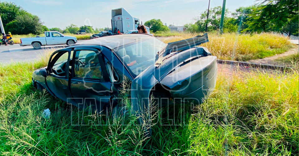 Durante esta mañana, la conductora de un automóvil Chevy Monza que lo guiaba en sentido de poniente a oriente por el acceso al 77 Batallón de Infantería, se pasó derecho al cruzar los carriles de norte a sur del Libramiento.