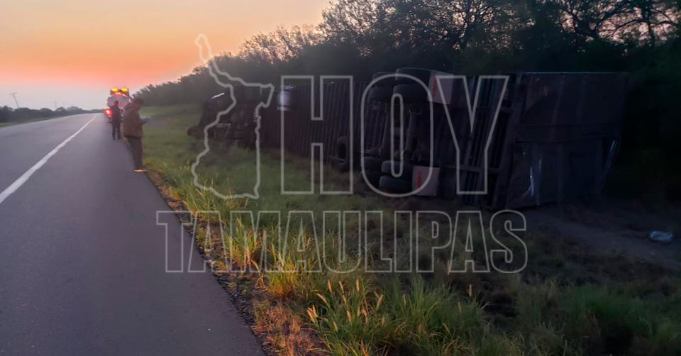 La unidad transportaba jitomate desde Irapuato, Guanajuato, con destino a Reynosa, Tamaulipas cuando se volcó, a la altura del municipio de Padilla.
