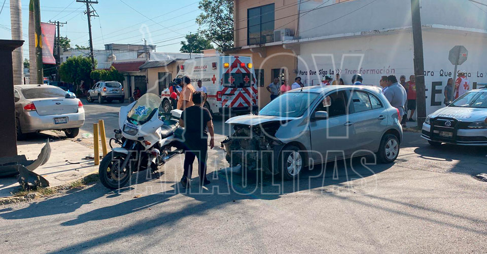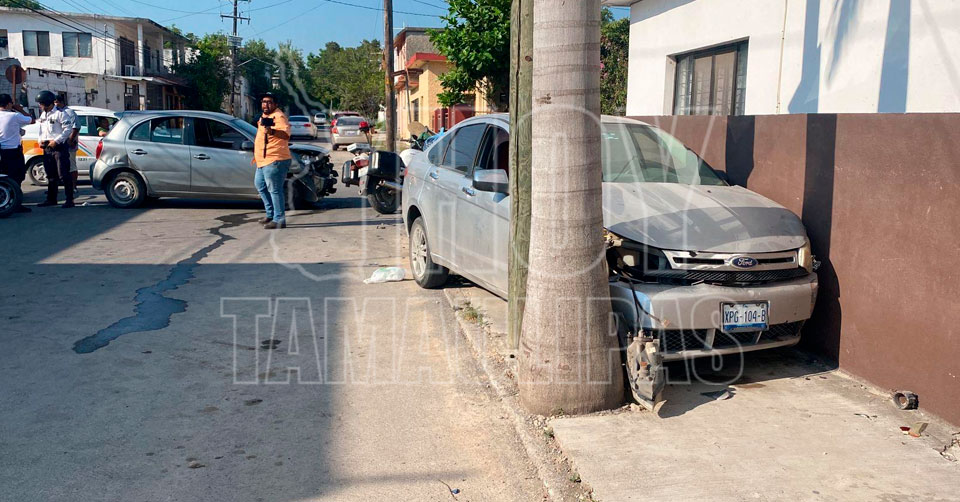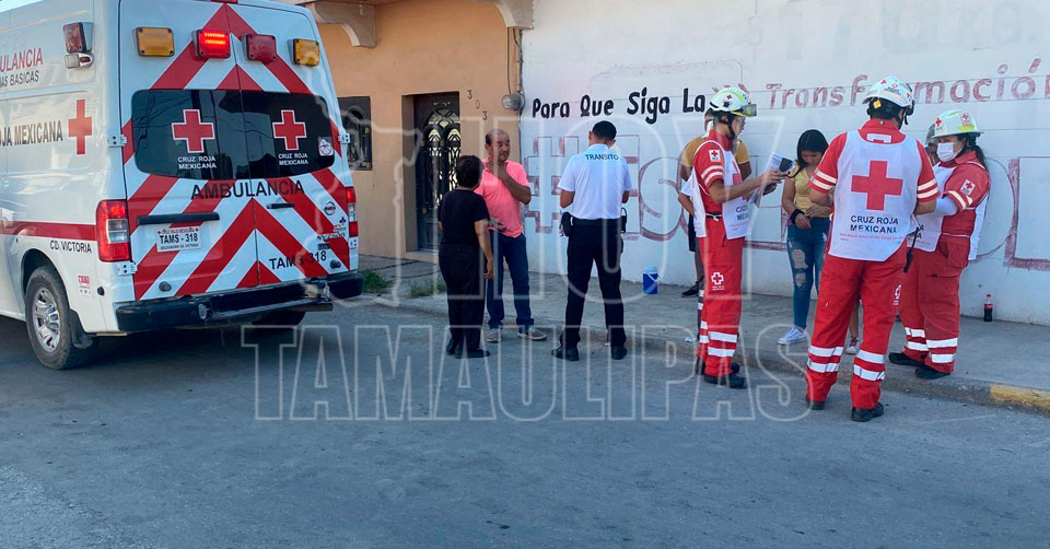 Ciudad Victoria, Tamaulipas. - Un accidente vial registrado esta mañana dejó como saldo cinco personas lesionadas, entre ellas una ama de casa que fue atropellada por un vehículo que quedó sin control y se trepó a la banqueta al ser impactado por otra unidad, en el Cero Matamoros de la capital de Tamaulipas.