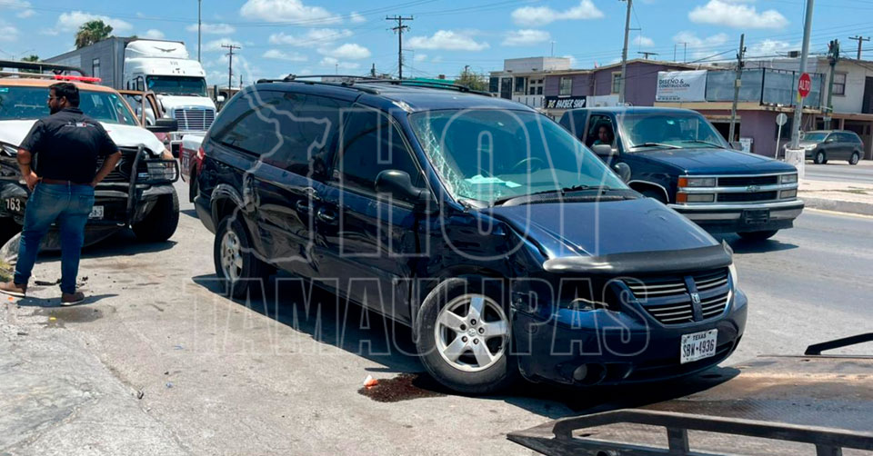Matamoros, Tamaulipas. - Un fuerte accidente vial ocurrió en la Avenida del Niño con Vía Láctea de la ciudad de Matamoros, mismo que fue ocasionado por elementos de la Guardia Estatal.
