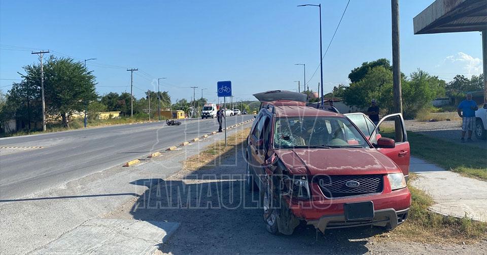 El accidente se registró en la carretera antigua Victoria-Matamoros, frente al Panteón de la colonia Paso Real, y el lesionado fue llevado al nosocomio en una ambulancia de Protección Civil.