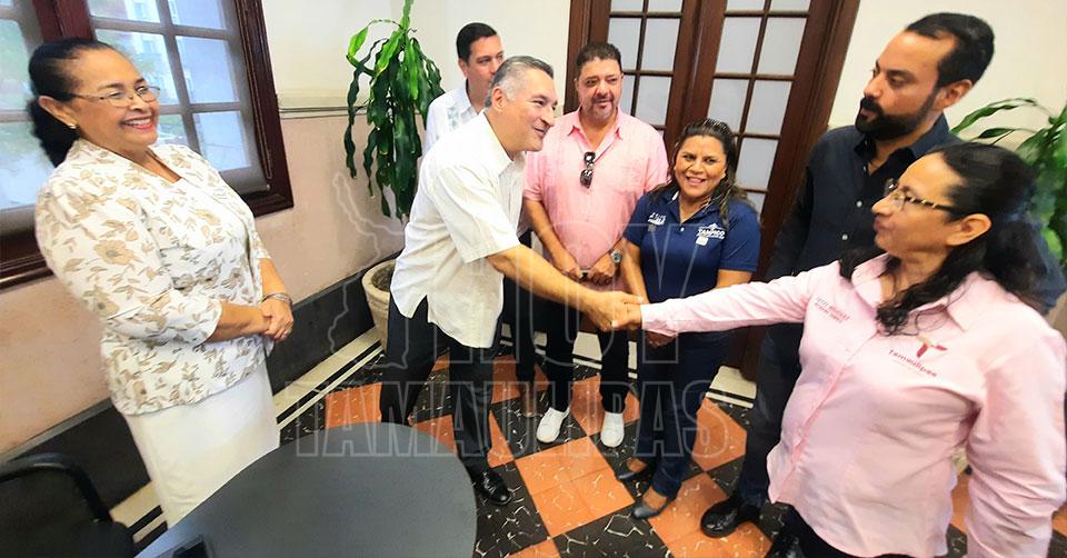 El mayor Javier Villalobos se reunió con el alcalde Jesús Nader en su oficina, donde conversaron sobre diversos temas, pero también platicó con los regidores de la Comuna Concepción Martínez Escobar, María de la Luz Mar Estrada, Leticia Hernández y Edgar Treviño Martínez, quienes le comentaron algunos de los asuntos que gestionan en el Cabildo.