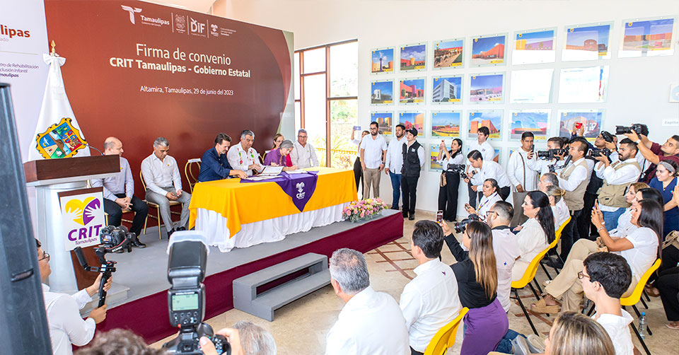 En esta ceremonia que se llevó a cabo en las instalaciones del CRIT Tamaulipas, también estuvo presente la Dra. María de Villarreal, presidenta del Sistema DIF Estatal, así como el Presidente de Fundación Teletón, Fernando Landeros Verdugo y el Director General del Sistema Infantil Teletón, Jorge Alcántara Aguileta, quienes junto al Gobernador, signaron dicho documento.