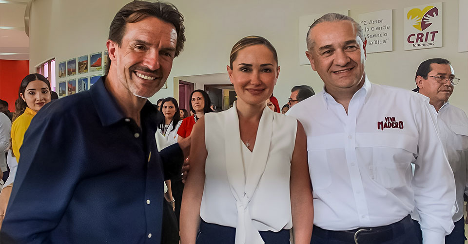Ciudad Madero, Tamaulipas.- Para fortalecer la atención de calidad de niñas, niños y adolescentes con discapacidad, el alcalde Adrián Oseguera Kernion y su esposa Ana Cristina Organista de Oseguera, presidenta del Sistema DIF Madero, acompañaron al gobernador Dr. Américo Villarreal Anaya, a la firma de convenio de colaboración entre el Gobierno de Tamaulipas y Fundación Teletón México, que permitirá la apertura de una tercera clínica en el Estado.
