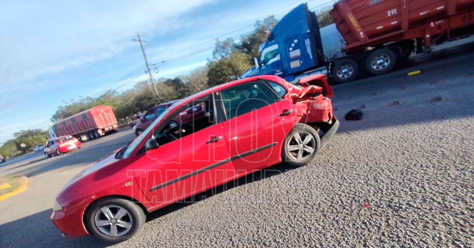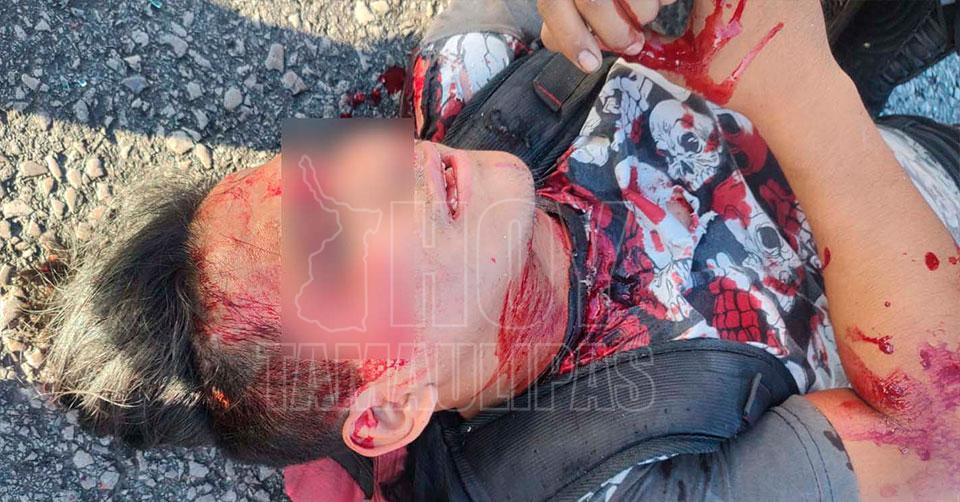 Aparentemente la frágil unidad se impactó en la parte trasera izquierda del automóvil SEAT Córdoba color rojo, con placas circulación del Estado de Tamaulipas, saliendo proyectado contra el pavimento con múltiples lesiones.