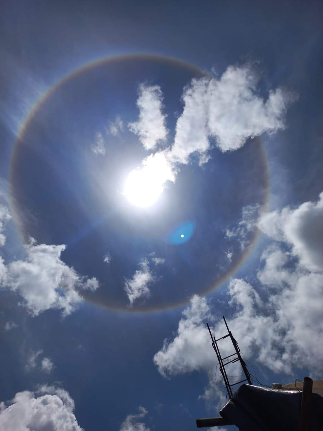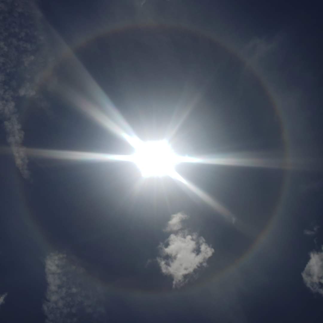 Se trata de un halo solar, un fenómeno meteorológico y óptico que se produce por la refracción de cristales de hielo que están en suspensión en la Tropósfera.