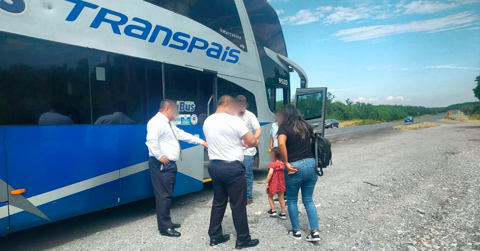 Durante los recorridos de seguridad y vigilancia que el personal comisionado a la Estación Segura Hidalgo se encontraba realizando en la Carretera Federal 85 Victoria-Monterrey, se observó un autobús de la línea Transpaís en la orilla de la carpeta asfáltica a la altura del kilómetro 67 cerca del Ejido San Francisco.