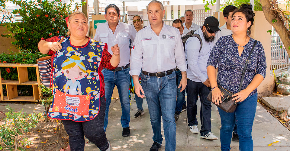 Por ello, en días pasados el alcalde Adrián Oseguera Kernion, visitó el Jardín de niños “Vicente Guerrero” ubicado en 2ª. Avenida de la colonia Jardín 20 de Noviembre; ahí a petición de padres de familia y maestros, realizó un recorrido de supervisión sobre las condiciones en las que se encuentra dicho plantel.