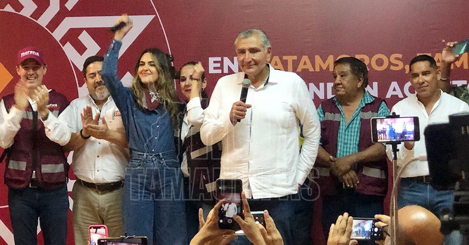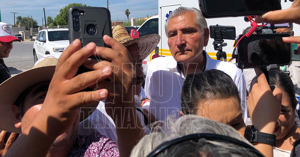 Matamoros, Tamaulipas. - El aspirante a coordinador nacional para la Defensa de la Cuarta Transformación, Adán Augusto López Hernández, llegó a Matamoros aparentemente sin escoltas, argumentando que él no utiliza seguridad para su persona.