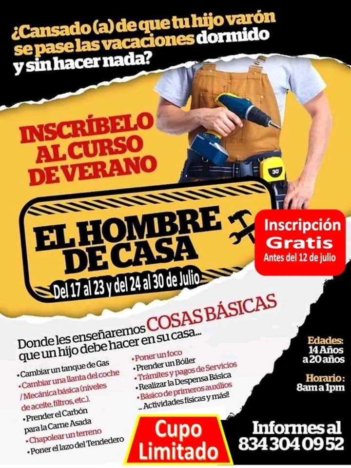 Impartirán curso de verano “El Hombre de la Casa” en Victoria