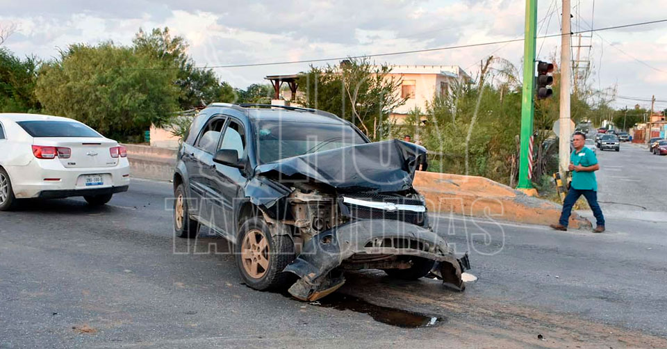 Nuevo Laredo, Tamaulipas.— Cinco personas lesionadas y daños materiales muy cuantiosos, fue el saldo que dejó un accidente registrado en la Carretera Aeropuerto de Nuevo Laredo, provocado por la conductora de un vehículo que no respetó la luz roja del semáforo.