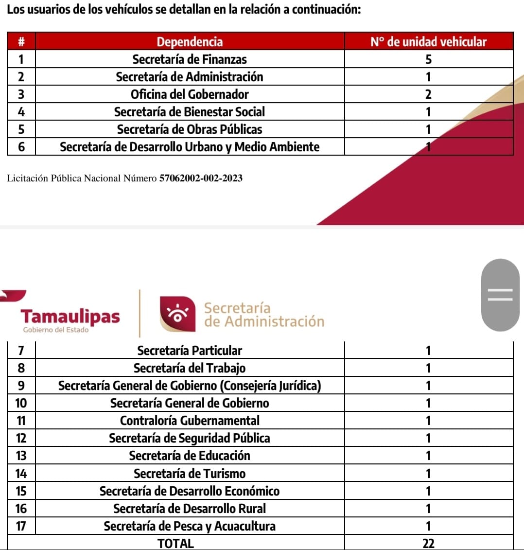 Arrendamiento de vehículos para el Gobierno de Tamaulipas costará más de 63 mdp