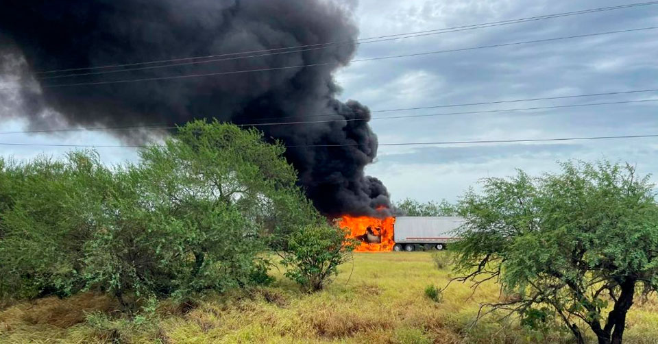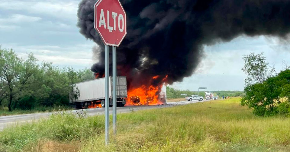San Fernando, Tamaulipas. – Un fuerte choque frontal entre dos tractocamiones que terminaron incendiados dejó como saldo al menos un chofer sin vida, mientras que un conductor se puso a salvo.
