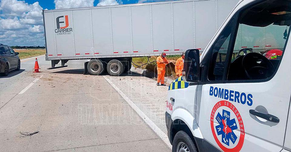 Trailero sale herido tras accidente carretero en Nuevo Laredo