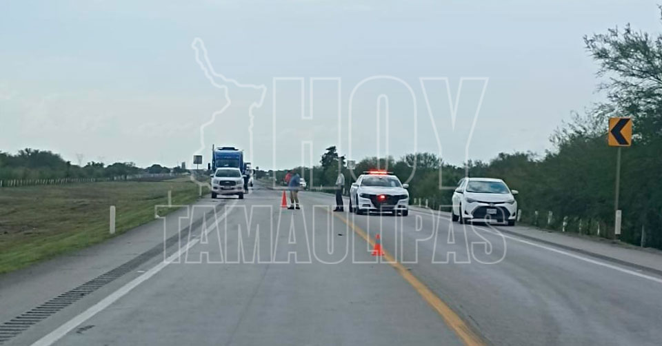 González, Tamaulipas. - La circulación sobre el Libramiento Estación Manuel-González se encuentra bloqueada, debido al fuerte choque entre dos automóviles y un tráiler que se registró este sábado, en donde la cabina de esta última unidad se incendió.