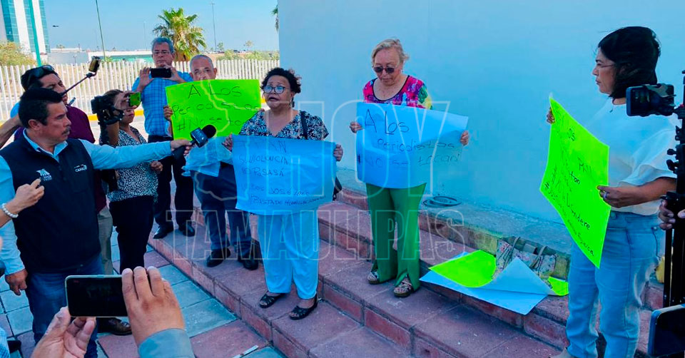 Los periodistas acudieron al Congreso de Tamaulipas a condenar los hechos suscitados ayer por la tarde, en donde la diputada panista Leticia Sánchez Guillermo cacheteó al periodista, además el personal de seguridad del diputado Vicente Verástegui agredió físicamente al periodista al sacarlo de las instalaciones.