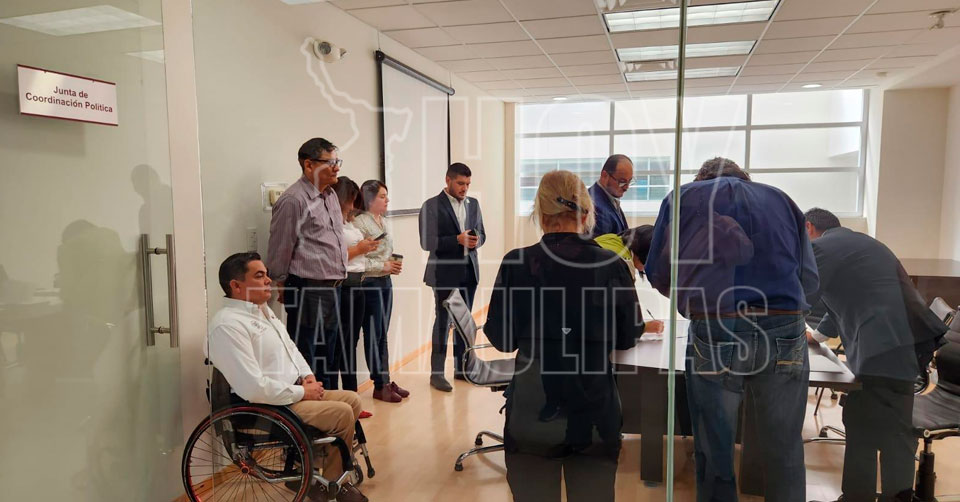 Ciudad Victoria, Tamaulipas. - En lo que antes era una oficina abandonada fue instalada la Junta de Coordinación Política (Jucopo) del Congreso de Tamaulipas, sin la participación del presidente Félix García Aguiar, ni de la fracción del PRI, únicamente Gustavo Cárdenas de Movimiento Ciudadano y la diputada sin partido Mireya González.