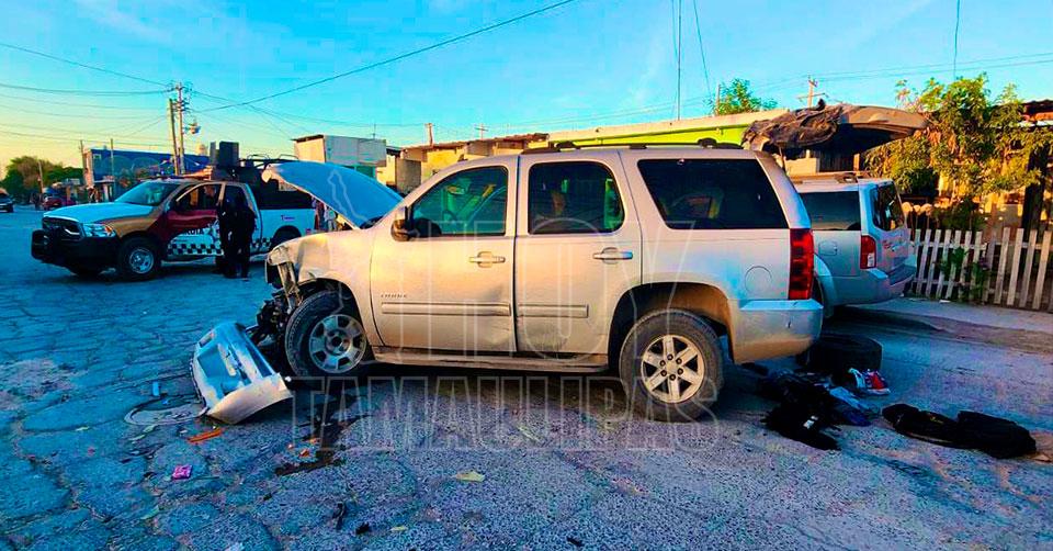 Se trata de una camioneta Chevrolet Tahoe que fue impactada contra otras unidades motrices y sus ocupantes lograron huir.