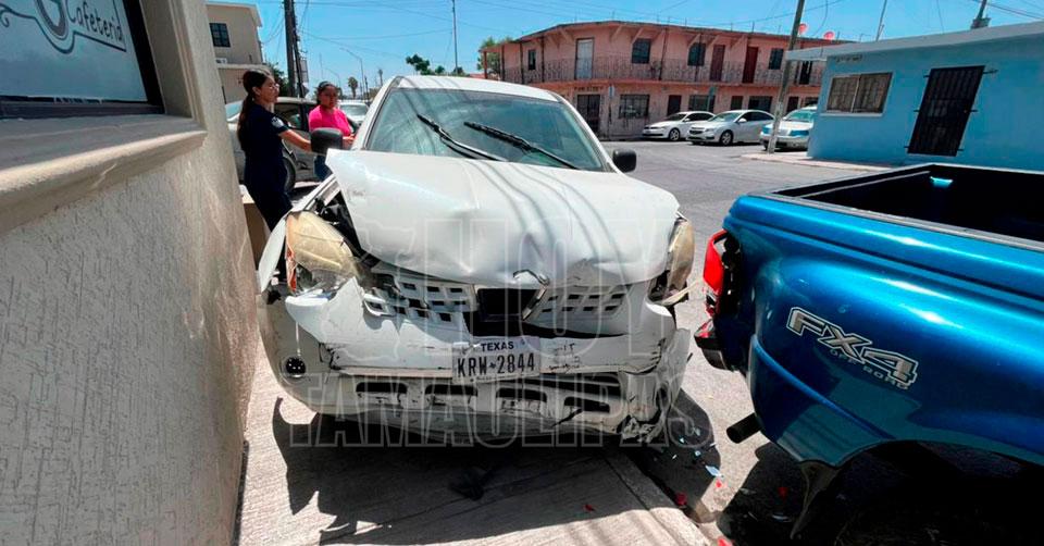 Matamoros, Tamaulipas. - Una carambola vehicular ocurrió la tarde de hoy en las calles 17 y Morelos de la zona centro de Matamoros, dejando cuantiosos daños materiales.