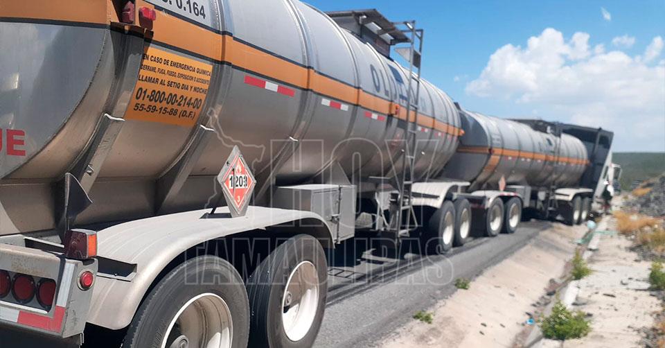 El conductor de la pipa se desconoce su paradero y guiaba un tracto camión International doble articulado con dos autotanques que transportaba combustible.