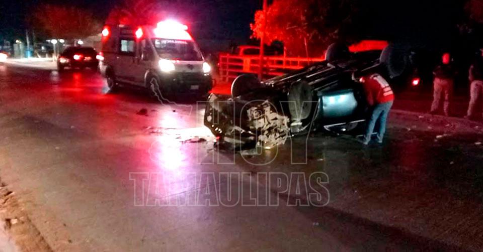 Abandonan vehículo tras volcadura en Nuevo Laredo