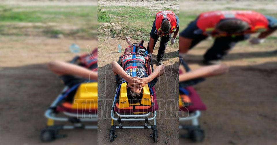 Integrantes de la agrupación Rescate Voluntario se movilizaron hasta la brecha que conduce del sector El Chocolate del Ejido Flores Magón en el municipio de Altamira, para atender al afectado.