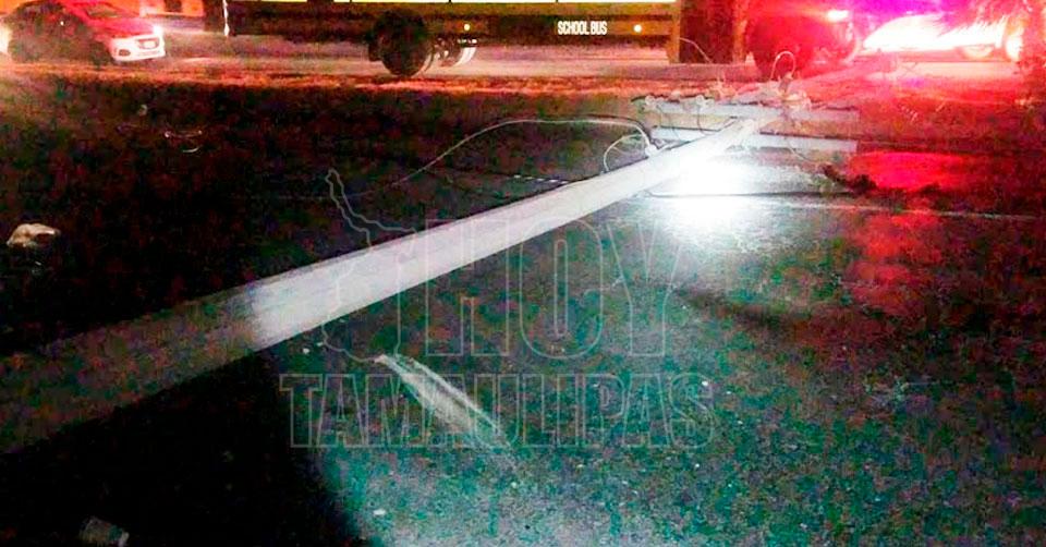 Al no poder enderezar el rumbo, el vehículo se desvió hacia la derecha y se proyectó directamente contra el poste de concreto de la Comisión Federal de Electricidad (CFE) que derribó.