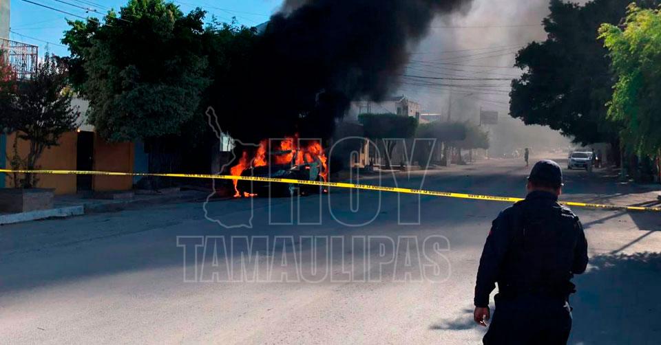 Incendio consume camioneta en el 35 Matamoros en Ciudad Victoria