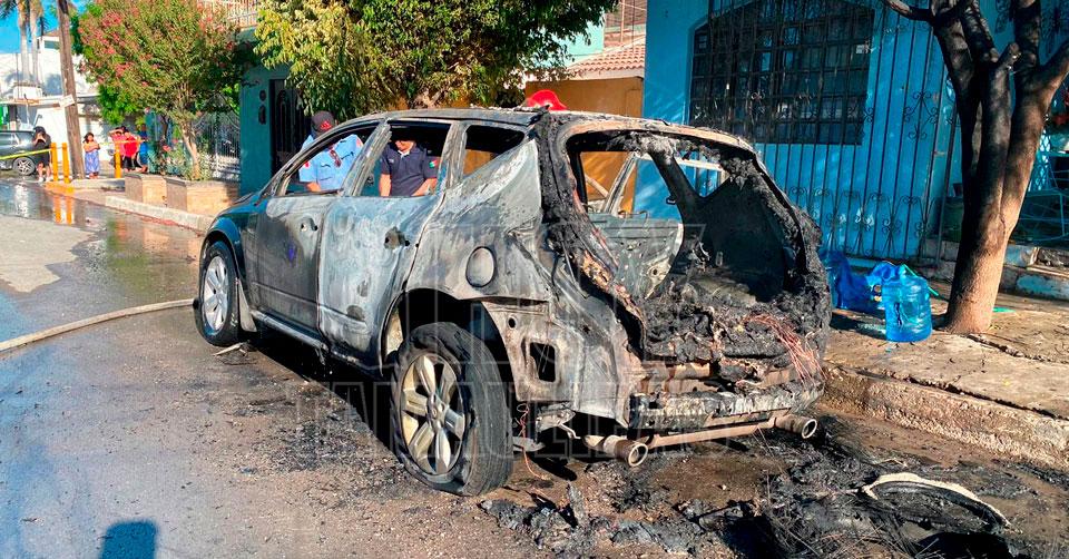 Ciudad Victoria, Tamaulipas. - Una camioneta quedó reducida a cenizas esta tarde luego de incendiarse tras un presunto corto circuito, en el 35 Matamoros de la colonia Miguel Alemán en Ciudad Victoria.