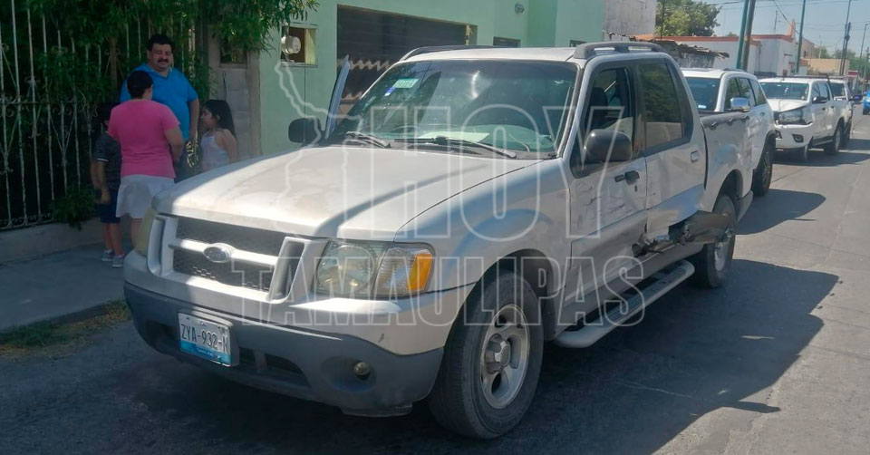 Nuevo Laredo, Tamaulipas. — Al no respetar la señal de alto, una mujer fue impactada por el conductor de una camioneta en un crucero de la colonia Hidalgo en Nuevo Laredo.