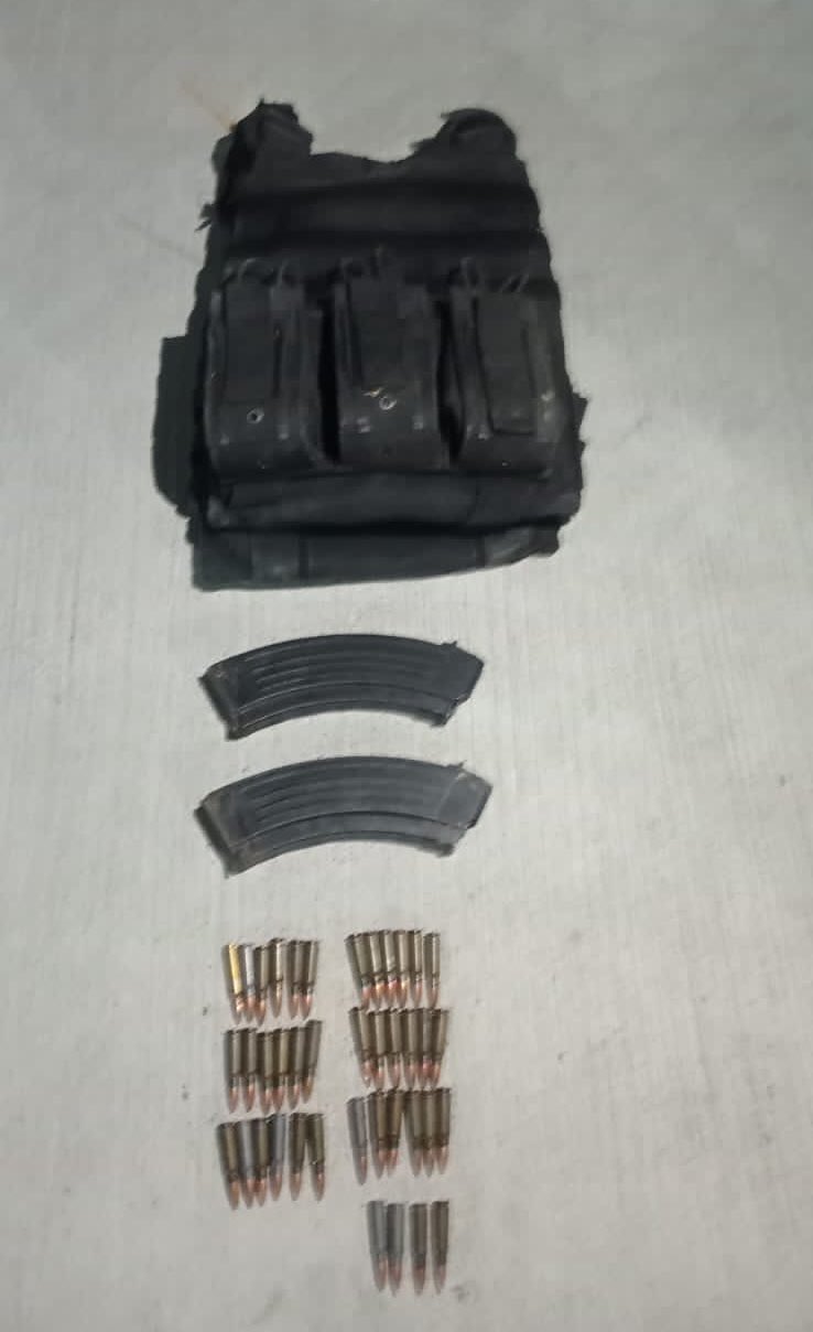 Al interior de la unidad asegurada se logró el decomiso de un arma larga tipo AR-15 de uso exclusivo del Ejército Mexicano, así como cargadores, cartuchos y chaleco antibalas.