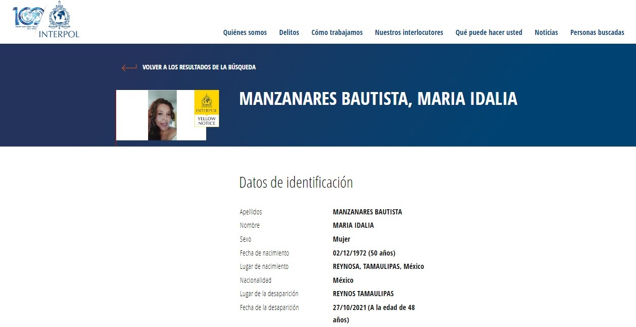 Ahora también la Interpol emitió una notificación amarilla a 194 países aliados para iniciar con su búsqueda; la cual se refiere a una alerta policial mundial sobre una persona desaparecida. Se publica para localizar a víctimas de rapto por uno de los progenitores, retenciones (secuestros) o desapariciones inexplicadas.