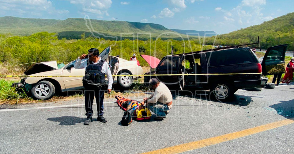Llera, Tamaulipas. – Un fuerte accidente carretero registrado esta mañana dejó como saldo un adulto y un bebé de meses de nacido sin vida, además de ocho personas con lesiones graves.