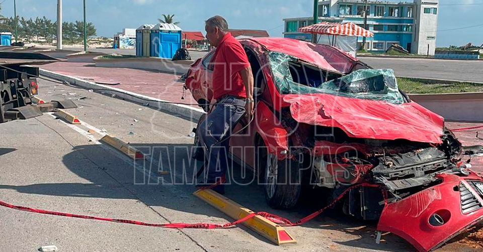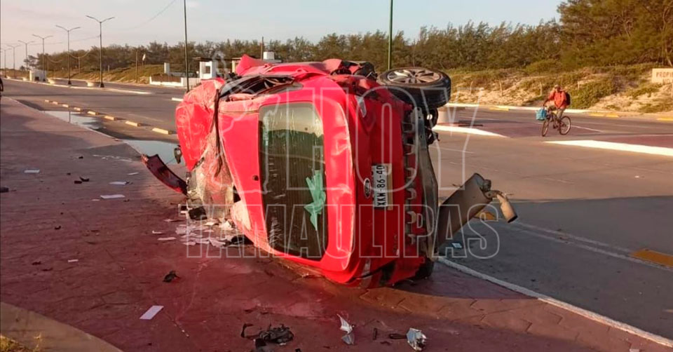 Ciudad Madero, Tamaulipas. - El joven conductor de un automóvil prácticamente "volvió a nacer", después de volcar el automóvil que conducía a exceso de velocidad y proyectarse contra la banqueta, esta mañana en Playa Miramar.