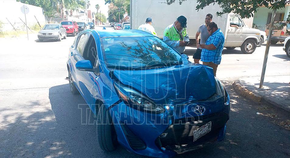 El percance sucedió sobre la avenida Allende, en su cruce con la calle Venezuela, y de este fue señalada como responsable Alejandra, de 28 años, quien conducía un automóvil Toyota Prius.