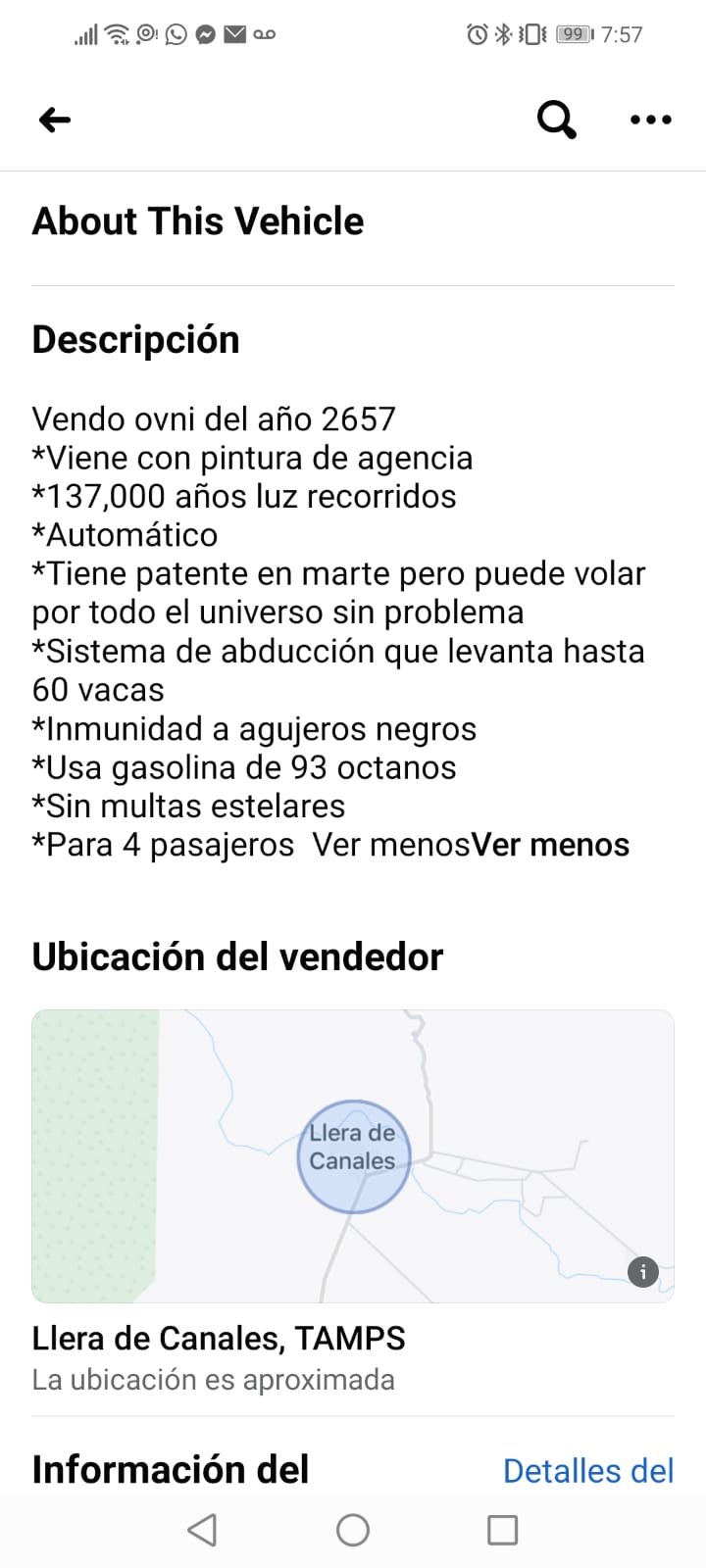 En los grupos de ventas en la plataforma digital Facebook han aparecido peculiares publicaciones, donde se venden ovnis. Las publicaciones se hicieron desde municipios de Tamaulipas