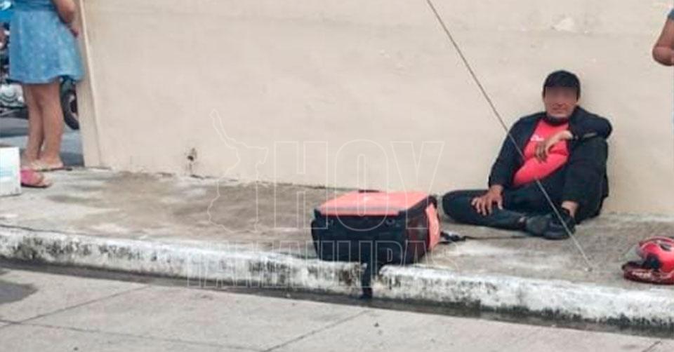 Tampico, Tamaulipas. - Un motociclista que se desempeña como repartidor, resultó lesionado al colisionar su frágil vehículo con un automóvil, unidad motriz que resultó dañada del frente, mientras que el afectado tuvo que ser atendido por personal de la Cruz Roja.