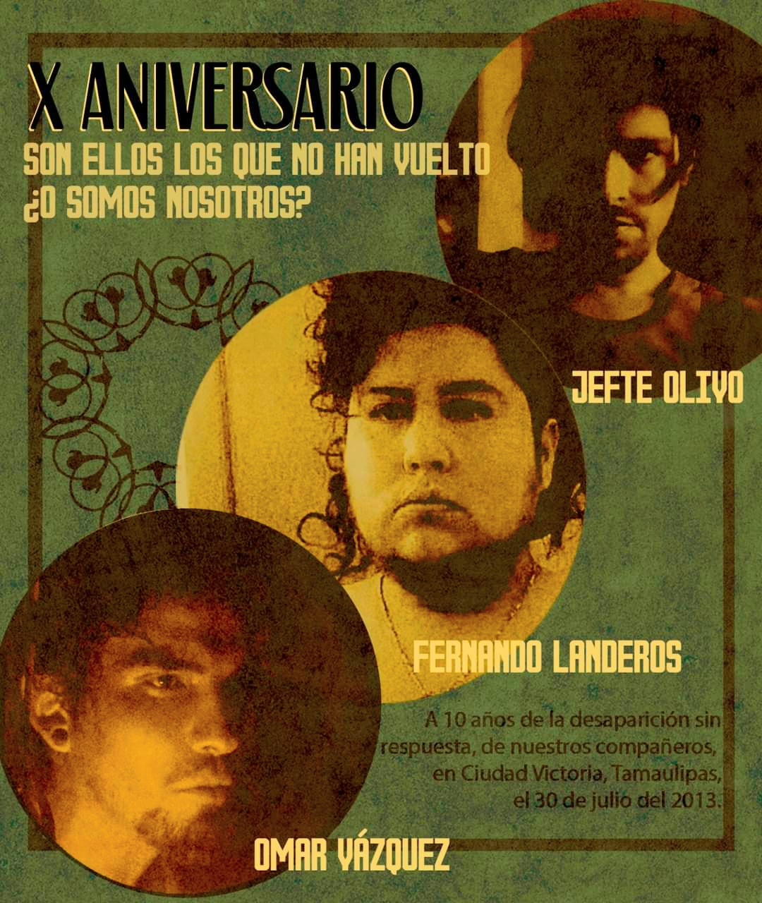 A través de su página del colectivo La Guarda Teatro dieron un posicionamiento al cumplirse una década de su lamentable desaparición, y también para exigir su regreso, dándose a conocer en el documento que en esta ocasión como en las pasadas han enviado mensajes a Fernando, Jefté y a Omar, donde les recuerdan cuando convivían con todos ellos, dejando grata huella por su manera de participar, pero una terrible ausencia que parece no comprender.
