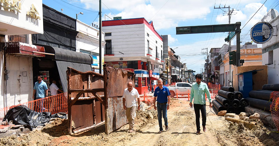 Chucho Nader detalló que la obra de repavimentación de la calle César López de Lara incluye la reposición de todo el concreto hidráulico en el tramo comprendido entre las calles Álvaro Obregón y Emilio Carranza, además de la sustitución general de las líneas de agua potable y drenaje sanitario.