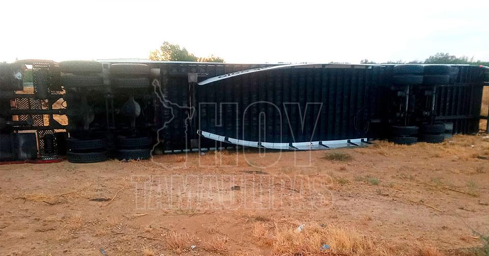 Vuelca trailero por fuertes vientos en autopista hacia Nuevo Laredo